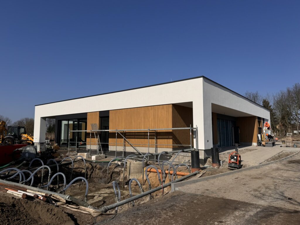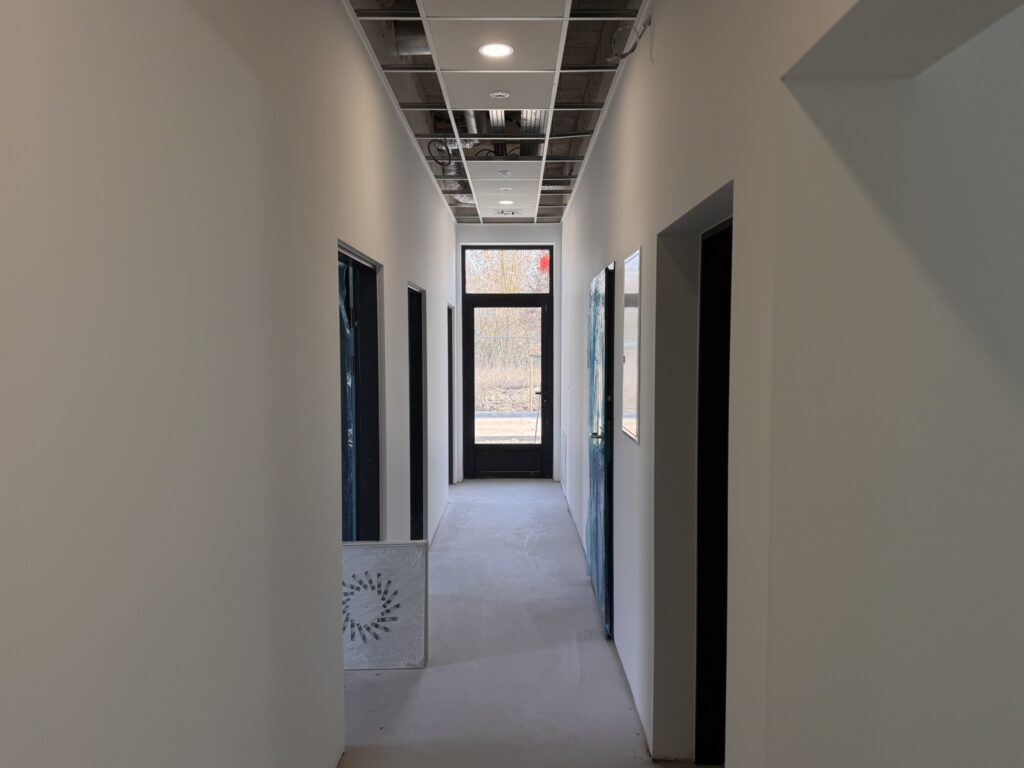 Dotychczas wykonano fundamenty, wymurowano ściany, strop i prace żelbetowe (słupy i podciągi). Aktualnie trwają prace nad rozprowadzeniem instalacji elektrycznej, pokryciem dachu oraz instalacją zewnętrzną.